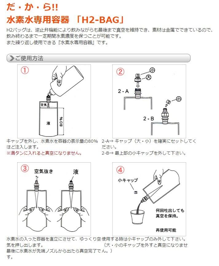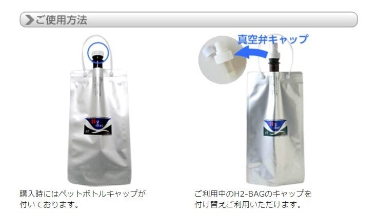 ※交換用H2-BAGは、真空弁キャップは付いておらず平キャップになります。